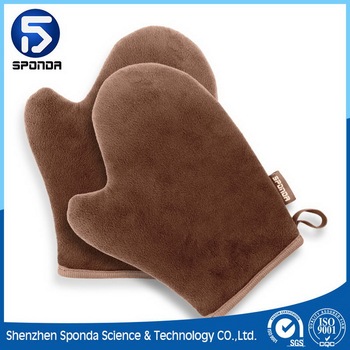 Melhor Qualidade Anti-Slip Elastic Pulso Auto Bronzeamento Luva Brown Velvet Sunless Tan Mitt OEM